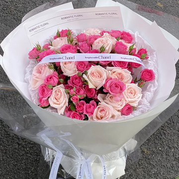 13朵粉荔枝玫瑰,8支多头苏菲宝贝泡泡