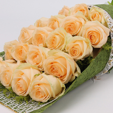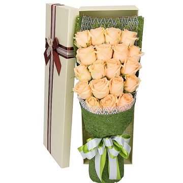 白色w纱网内衬,外层绿色落水纸扇形包装,白色及绿色缎带束扎。礼盒装花语:爱情是种缘分,我们要好好珍惜。所以,我在自己的心窗上栓上美丽的风铃,如果你来到,铃声扣动,便是你给我的开心。附送: