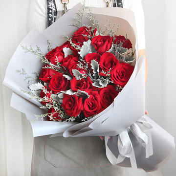 19朵红玫瑰,尤加利和情人草丰满间插