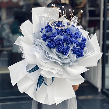 33朵蓝色妖姬(真鲜花)1个皇冠