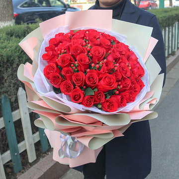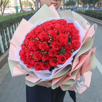 由于鲜花包扎各地的花艺师不同,可能在花束的形式和搭配上与图片不完全一致,但我们保证鲜花的主花材品种、新鲜程度、数量、颜色与说明一致,谢谢。说明: