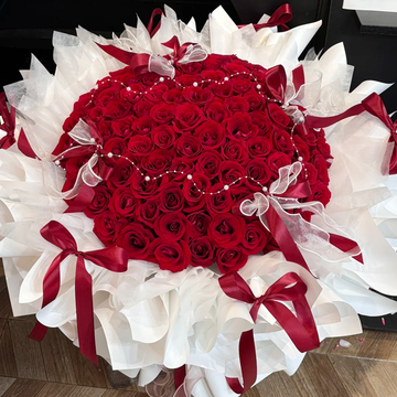 99朵卡罗拉红玫瑰,珍珠等配饰