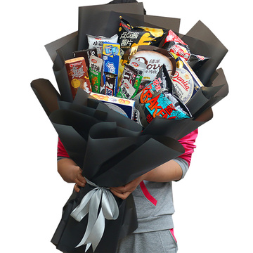黑色雾面纸扇形包装,银色缎带束扎花语:对你的爱永不打烊附送: