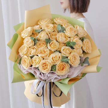 33朵香槟玫瑰,尤加利间插