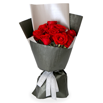 内衬白色珠光纸,外用黑色珠光纸单面包装,灰色蝴蝶结束扎。花语:有一片天涯叫咫尺,有一亩桑田叫沧海,有一束爱情叫至死不渝,有一股思念叫刻骨铭心。我愿在你的天涯,守护桑田,散播思念,期待爱情玫瑰开花。附送: