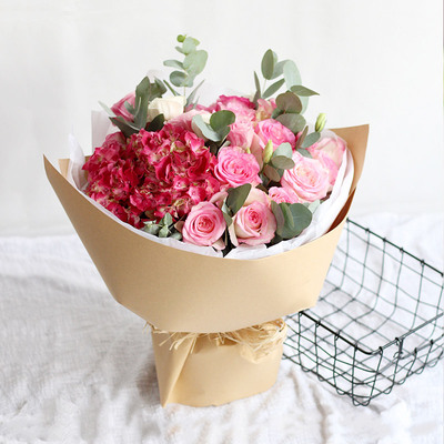 白纸内衬素色牛皮纸精美包装,配拉菲草系结束扎。花语:其实一直关心你的人就在你身边,你没发现吗?附送: