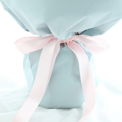 白纸内衬,浅蓝色卡纸金华美包装,配淡粉色丝带蝴蝶结束扎。花语:世界上的一切光荣和骄傲,都来自母亲。附送:
