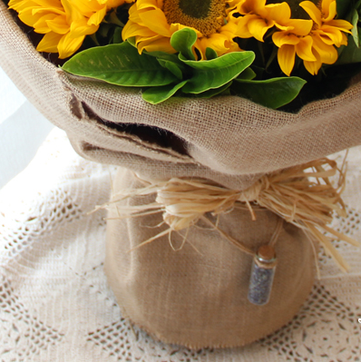 复古报纸色麻片束腰,拉菲草束扎花语:爱得坦坦荡荡,爱得不离不弃,勇敢地去追求自己想要的幸福附送: