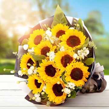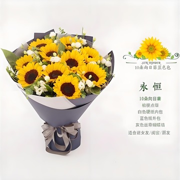 10朵向日葵,桔梗点缀。