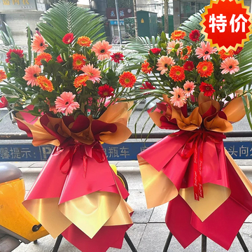 红金色欧雅纸束腰,三脚架花篮花语:开业大吉,财运开来。附送:
