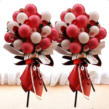 气球15个(8红7粉),红粉弗朗间插,散尾叶搭配