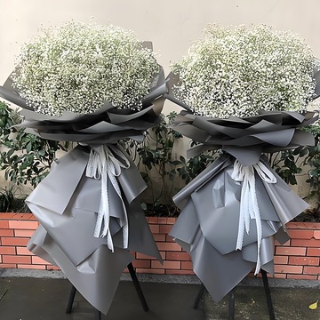 灰色欧雅纸包装,三脚架花篮花语:吉星高照,财运享通。附送: