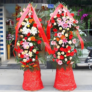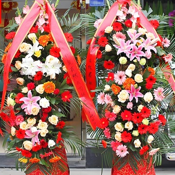 开业花篮,红色祥云纸围边花语:开业大吉,鸿途非凡附送: