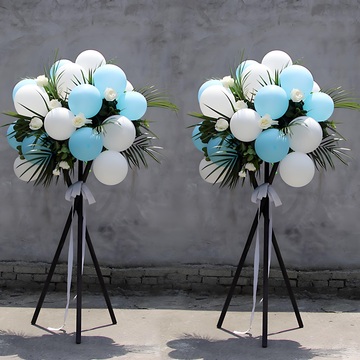 8个蓝色气球,8个白色气球,适量白玫瑰间插,绿叶搭配,散尾叶间插