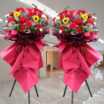 开业花篮花语:门迎晓日财源广,户纳春风喜庆多附送: