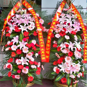 开业花篮花语:蒸蒸日上,红红火火,附送: