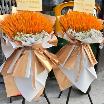 大麦开业花篮,单个600支大麦,白色满天星搭配