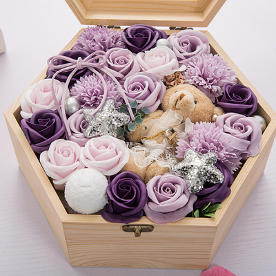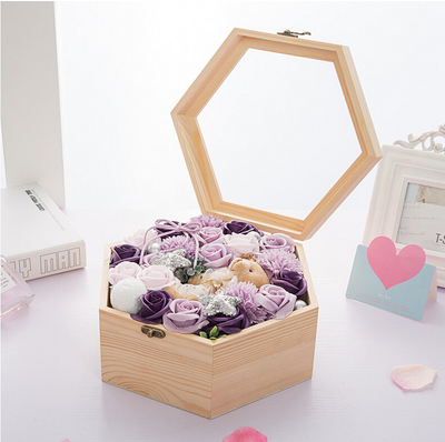 六角木盒香皂花礼盒花语:最美的你不是生如夏花,而是在时间件的长河里,波澜不惊。附送: