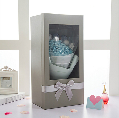 清新绿色包装纸蓝白条纹彩带束扎高档灰色礼盒花语:把我的思念洒在风里,就算在地球的另一面,也能让你听见,把思念挂在心里,为你守候一生。附送: