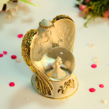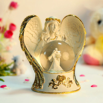 金色带灯天使之翼水晶球音乐盒