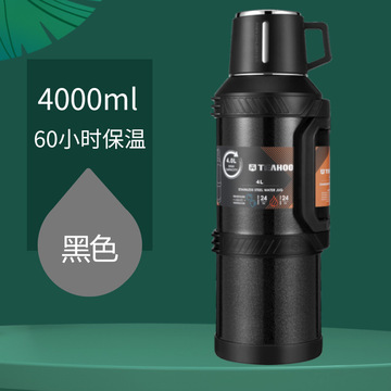 4L保温壶户外304不锈钢超大容量保温杯冷热水瓶车载 黑色4L