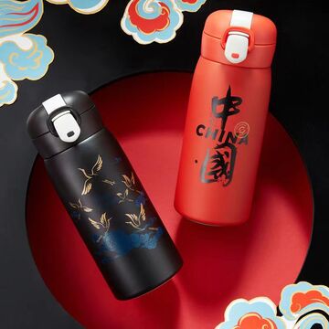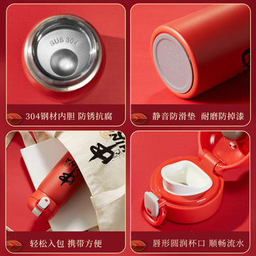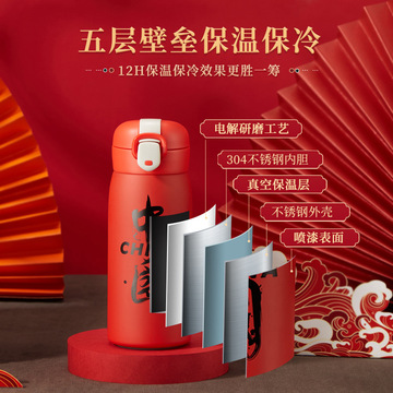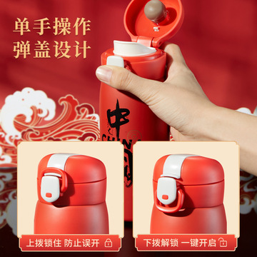 中国风创意保温杯弹跳盖不锈钢杯子国潮水杯礼品 红色380ml
