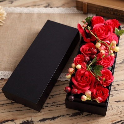 高档纸质黑色盒子花语:纤云弄巧,飞星传恨,银汉迢迢暗度。金风玉露一相逢,便胜却人间无数。柔情似水,佳期如梦,忍顾鹊桥归路。两情若是久长时,又岂在朝朝暮暮。附送: