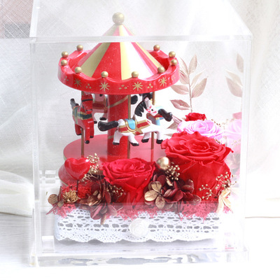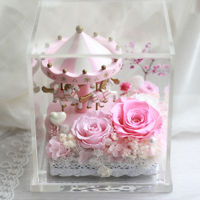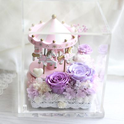 永生花迷你公仔绿叶等材料搭配