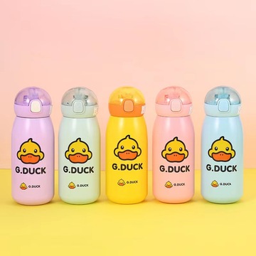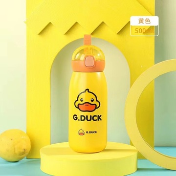 卡通保温杯 316不锈钢透明盖弹跳可爱学生吸管水杯子 黄色