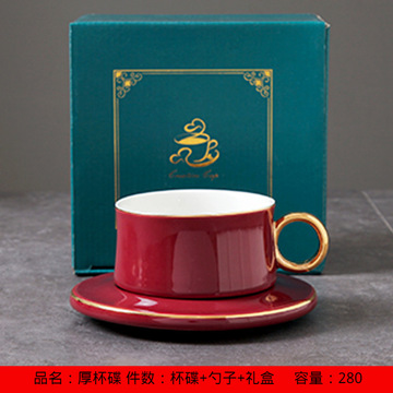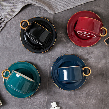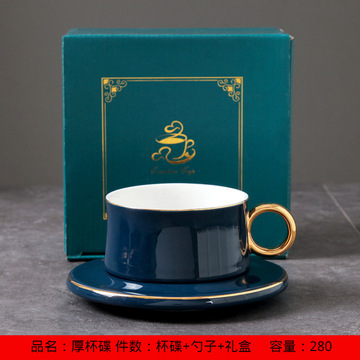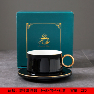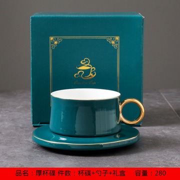 新款北美轻餐吧咖啡杯碟 金边陶瓷咖啡杯带勺礼盒套装 孔雀绿套装+勺