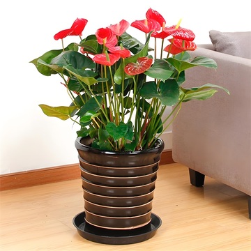黑色螺纹盆。花盆因进货批次不同,样式可能略有差异,故本照片仅做参考,具体以实际商品为准。花语:鸿运当头,财源广进吉祥照附送: