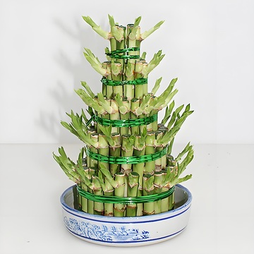 青花瓷花盆(花盆因进货批次不同,样式可能略有差异,故本照片仅做参考,具体以实际商品为准。)花语:大吉大利、富贵一生、竹报平安。附送: